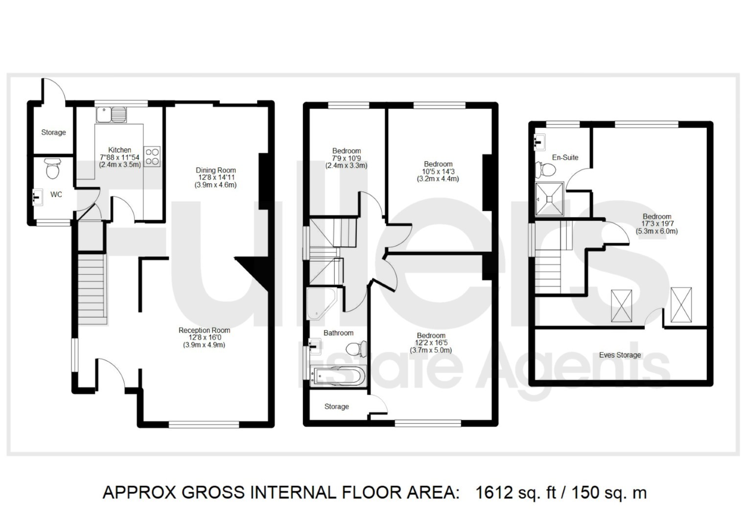 Offering 1,612 sq ft of well‑arranged living space, the property features two generous reception rooms, a practical kitchen, large first‑floor bedrooms, and a superb top‑floor loft suite with en‑suite.