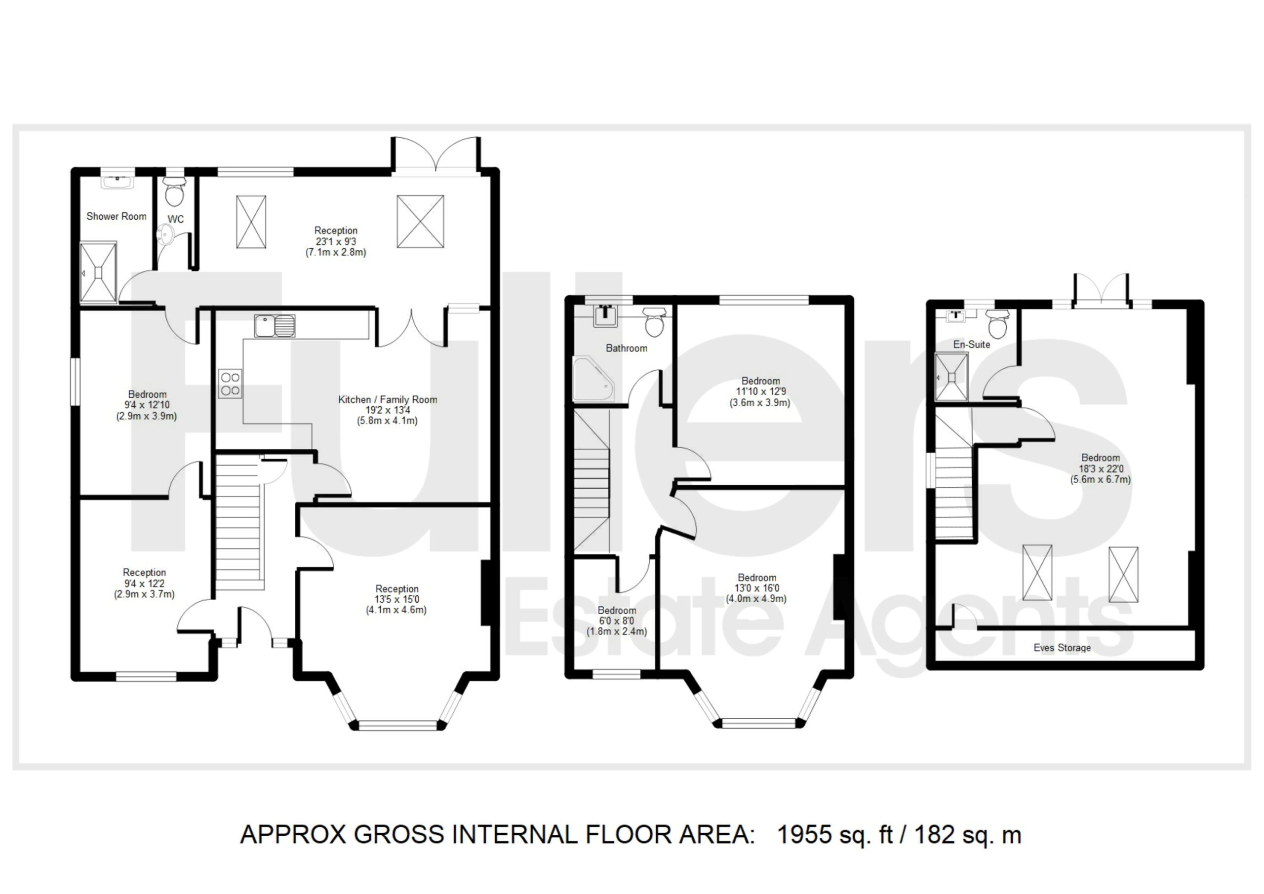 The ground floor offers an impressive amount of living space, beginning with a welcoming hallway leading to four separate reception rooms. The standout feature is the 19’2 x 13’4 kitchen / family room, and direct access to the garden through glazed doors. A ground floor bedroom and shower room provide valuable. A separate WC completes this level.